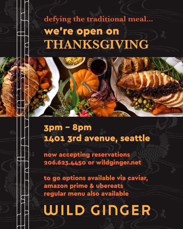 Wild Ginger On Twitter Thanksgiving Is Almost Here Our Downtownseattle Location Will Be Open From 3 8pm And Will Be Offering Our Regular Menu As Well As A Twist On The Traditional Thanksgiving from pbs.twimg.com Find a list of turkey trots and events on our thanksgiving calendar, or check out our guide to where to eat thanksgiving dinner.thanksgiving,online, seattle, wa, thurs nov 22, 2018. And your departure day is the apple cup (significant college football game). Einfache, schnelle und sichere buchungen mit sofortiger bestätigung. Banner / the seattle times) it. Thanksgiving 2018 events in the washington d c area. 1 of 6 | conscious eatery's garden + goat sandwich, with tons of creamy goat cheese. Are you thinking about volunteering at thanksgiving this year? What's open on capitol hill thanksgiving 2018.